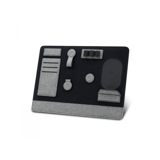 Помимо подставки для ноутбука, этот настольный органайзер оснащен подставкой для телефона с быстрой беспроводной зарядкой мощностью 15 Вт (регулируемой), планшетом для обмена, двумя магнитными док-станциями, держателем для ручек, держателем для карт, зажимом для кабеля и подставкой для телефона. Поддерживать порядок на рабочем столе еще никогда не было так просто!