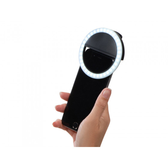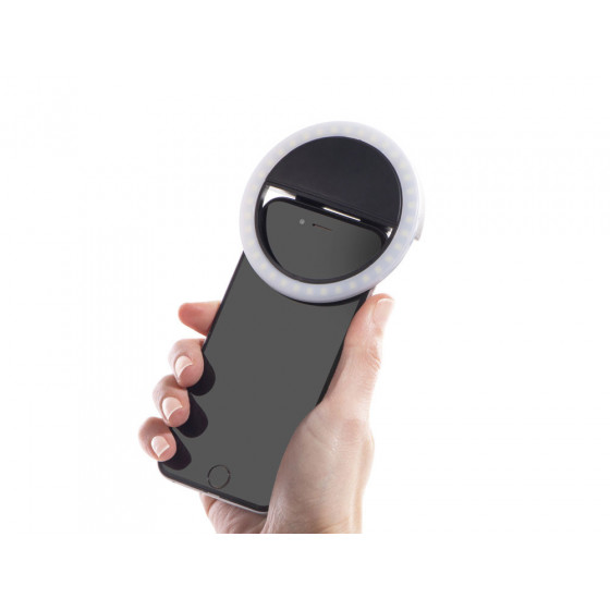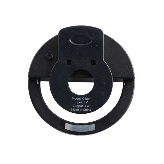 Световое кольцо "Glitter" делает ваши селфи- фото и видео более качественными за счет дополнительного освещения. Подсветка представлена нейтральным белым цветом от 48 светодиодов с 3 режимами яркости. Время непрерывного свечения - до 2 часов. Можно быстро зарядить от любого пауэрбэнка по micro USB. Благодаря удобной конструкции селфи-кольцо устанавливается и снимается за секунду. На корпусе имеются силиконовые защитные полоски, чтобы исключить даже малейшие повреждения экрану смартфона.