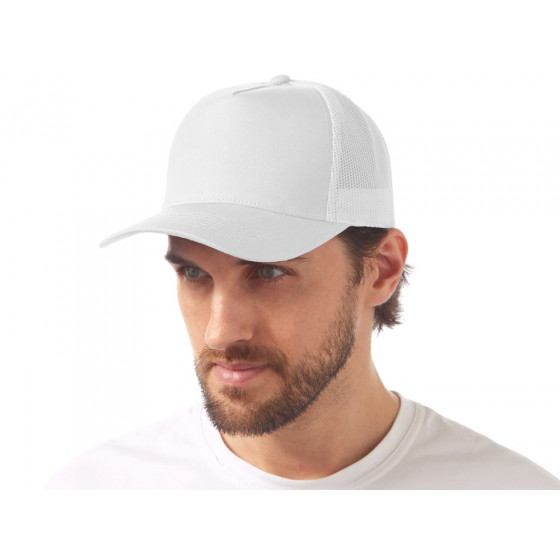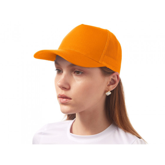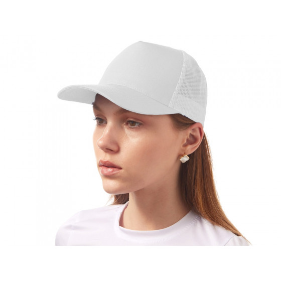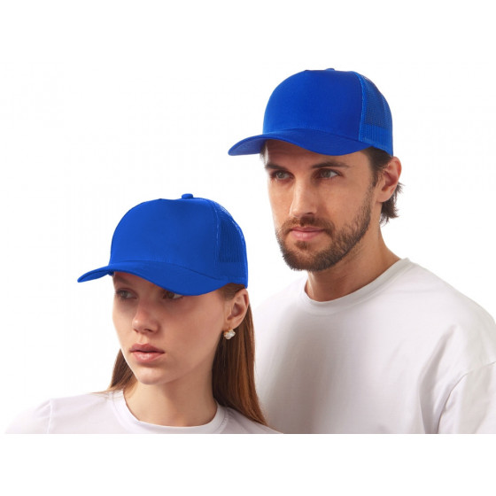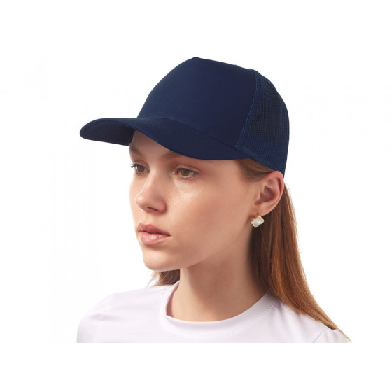 Пяти панельная бейсболка с передней частью из хлопка для комфорта головы и лба. Задняя часть из пластиковой сетки, которая отвечает за циркуляцию воздуха и обеспечивает изделию износостойкость. Для подгонки по размеру головы — пластиковая застежка.