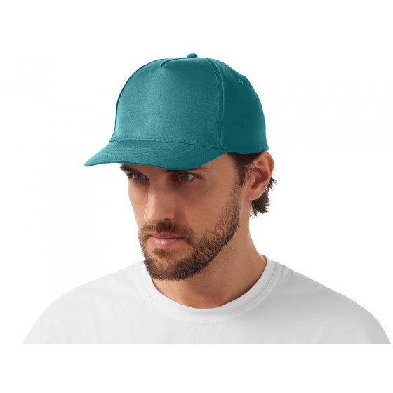 Бейсболка из 5 панелей с контрастным сэндвичем. Четыре вышитых вентиляционных люверса. Застежка на липучку.