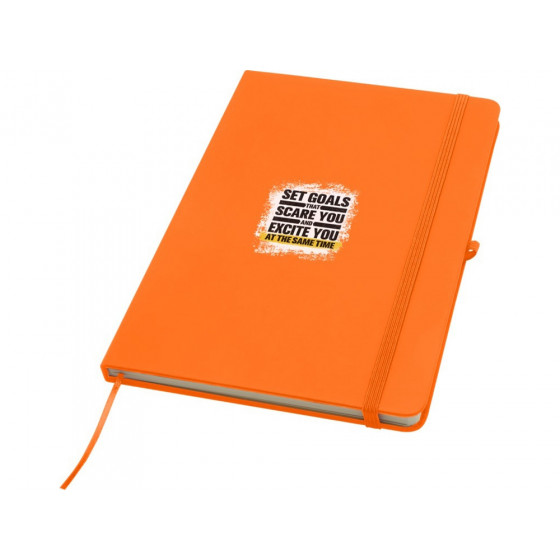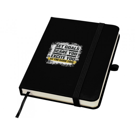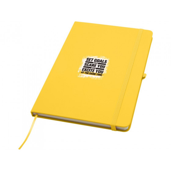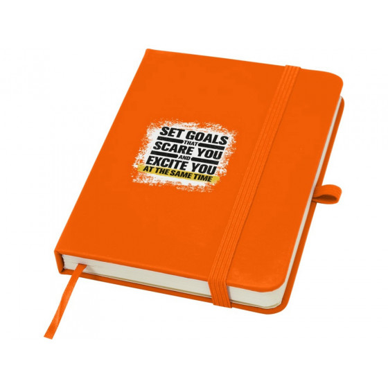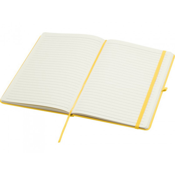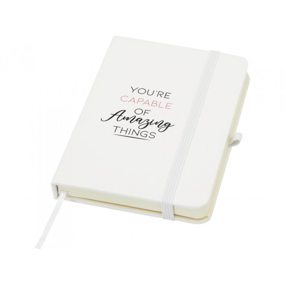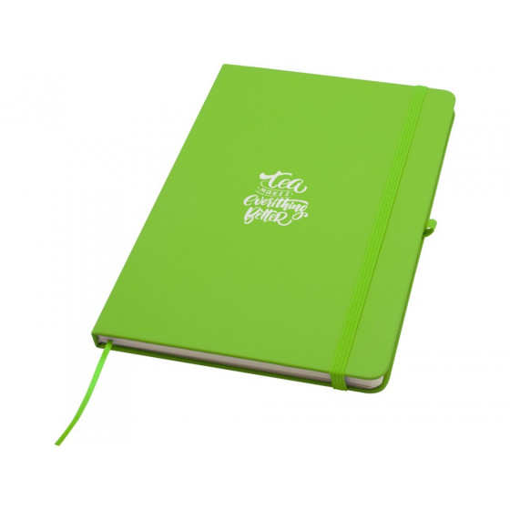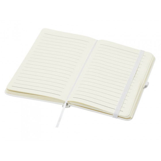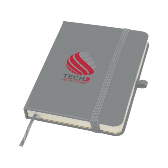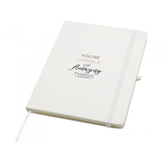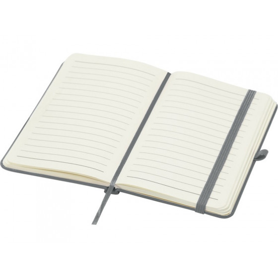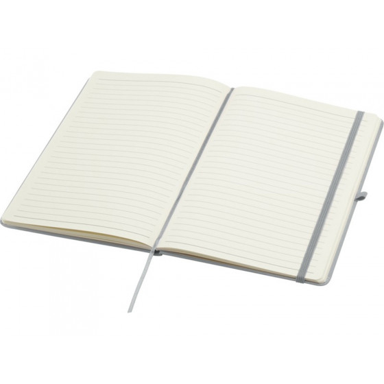 Блокнот размера А5 с обложкой серо-лилового цвета из б/у пластмассы (70 %), картона из переработанной бумаги (100 %) с передним карманом из 100 % остатков...