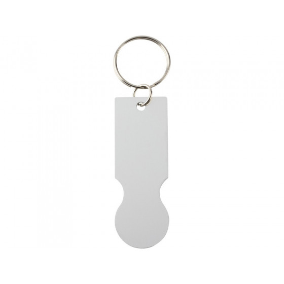 Металлический брелок для ключей Rhea с монетой для тележки предназначен для большинства тележек супермаркетов, позволяя открывать их без монет или жетонов. Сделан из переработанного алюминия.