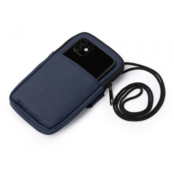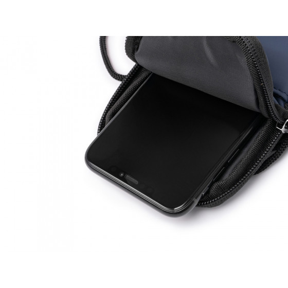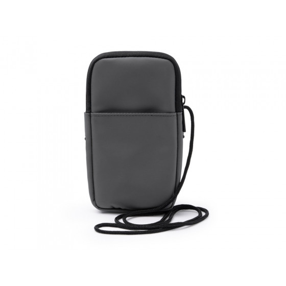 Сумка для мобильного телефона из искусственной кожи. Основное отделение закрывается на молнию. Внешний карман и регулируемый ремешок для переноски.
