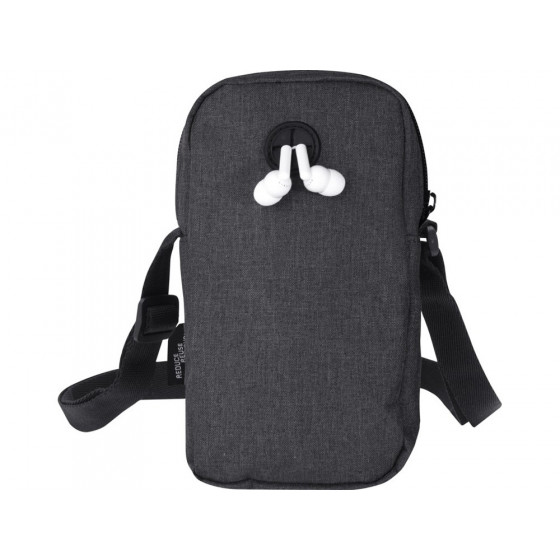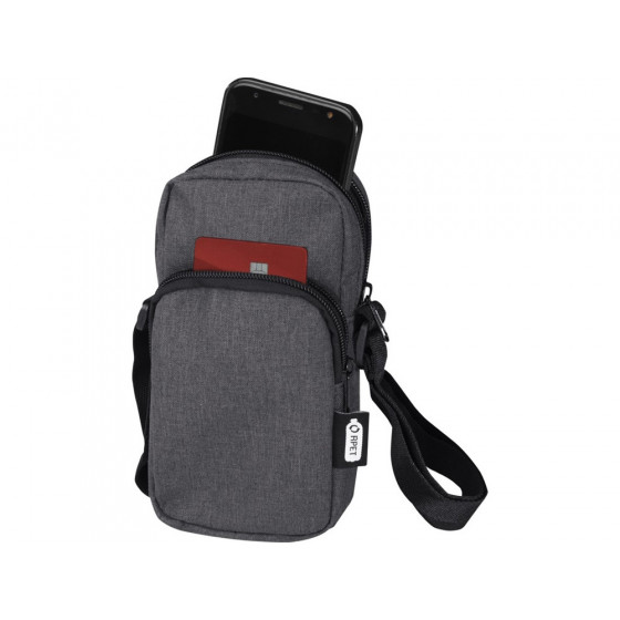 Сумочка для телефона Ross, изготовлена из переработанных материалов, сертифицированных согласно, GRS сохранит ваш телефон в безопасности и всегда заряженным с помощью входящего в комплект портативного зарядного устройства в отделении на молнии. Спереди расположен. карман на молнии для других мелких аксессуаров.Ремень 140 см регулируется по длине, что делает сумочку удобным аксессуаром для гаджетов во время поездок или передвижений по городу. GRS certified recycled polyester.