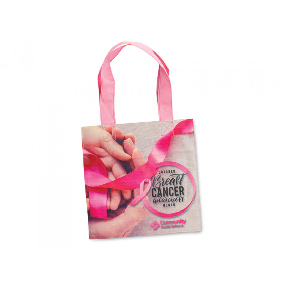 Мини-сумка выполнена из натурального неотбелённого хлопка - экологичного и безопасного материала. Небольшой размер позволяет брать сумку с собой, компактно размещая её в кармане или рюкзаке. Ручки и окантовка доступны в 16 цветах, которые удобно подобрать под фирменные цвета бренда. Полноцветная печать доступна на обеих сторонах.