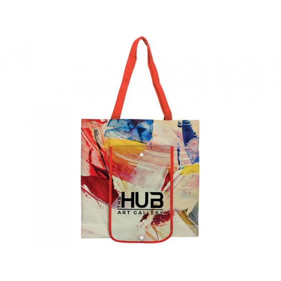 Самый удобный шоппинг - со складной сумкой, которая поместится даже в карман. Конструкция сумки имеет встроенный чехол на кнопки. Шоппер легко складывается в чехол и не занимает много места. Сумка имеет яркий акцент - цветные ручки и окантовку. В зависимости от принта, они станут дополнением к рисунку или контрастной деталью. На выбор доступно 16 цветов. Брендирование производится полноцветной печатью в край с обеих сторон. На поверхности сумки можно разместить лого компании или выставки, а также полноразмерный принт любой сложности.