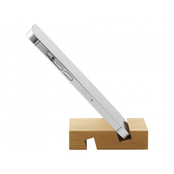 Экологичная подставка из натурального бамбука для мобильных устройств, планшетов или смартфонов. Имеет 2 разъема разной толщины, это позволяет как использовать ее с большим количеством гаджетов, так и менять наклон устройства при использовании.