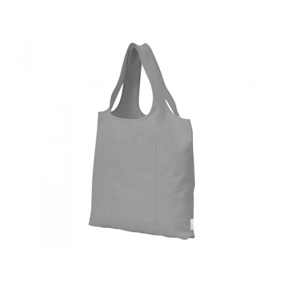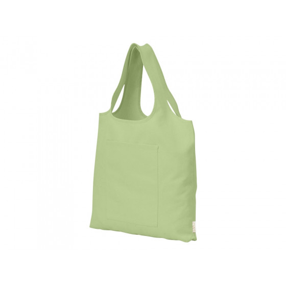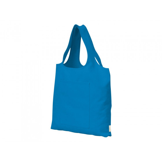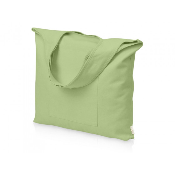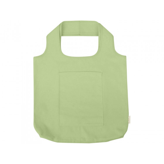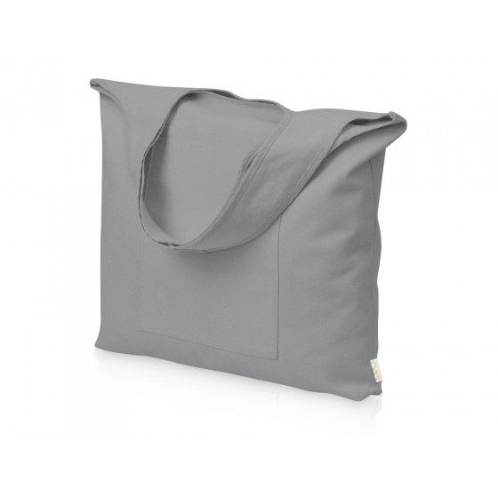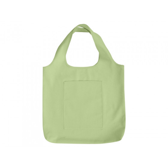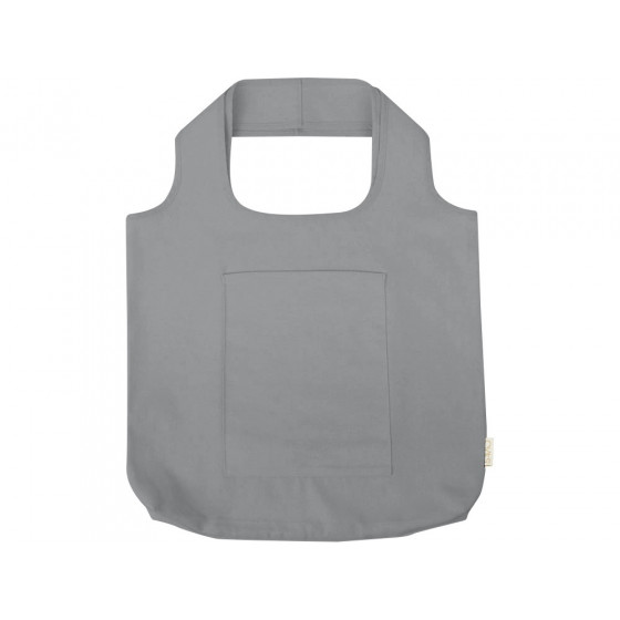 Вместительная сумка-шоппер из очень плотного переработанного хлопка с широкими лямками и большим наружным карманом 20 x 25 см спереди.