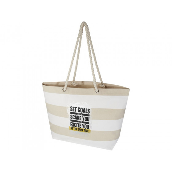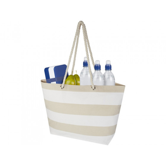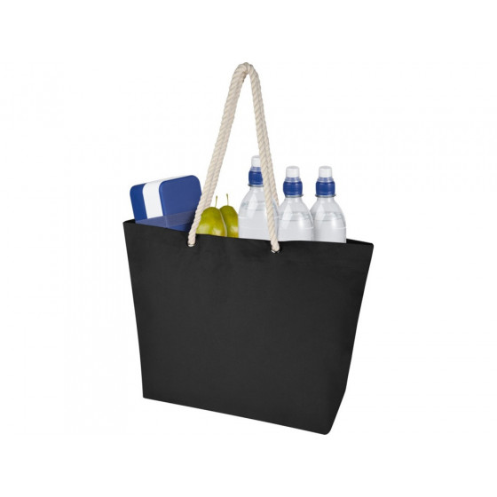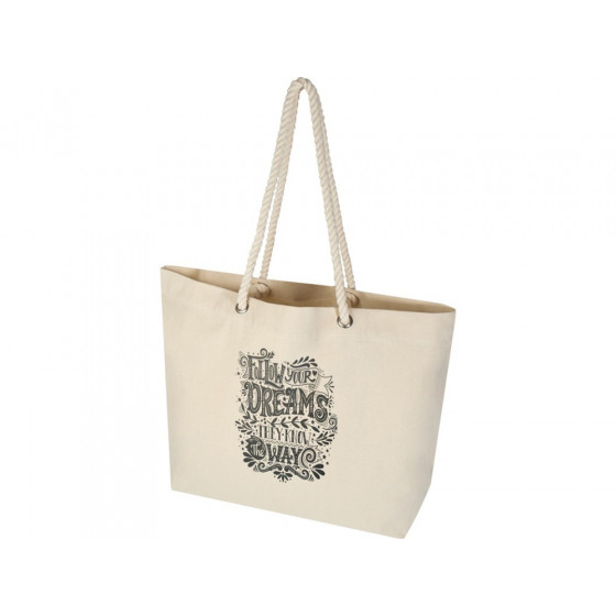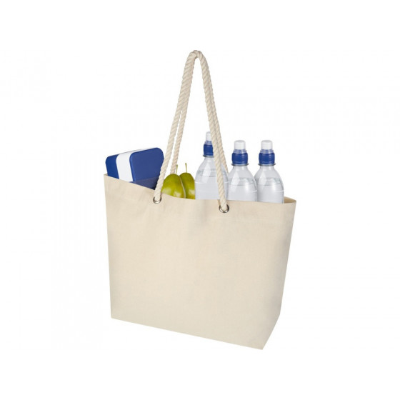 Эко-сумка Florida, изготовленная из 100% переработанного хлопка, сертифицированного согласно GRS, — это идеальная сумка для переноски всего необходимого для дня на пляже или повседневной прогулки. Хлопок плотностью 270 г/м² делает эту сумку прочной и долговечной, а веревочные ручки позволяют переносить тяжелые предметы в основном отделении. Длина ручек: 45 см. Выдерживает вес до 10 кг. Объем: 18 литр. GRS certified recycled cotton, 270 g/m2.
