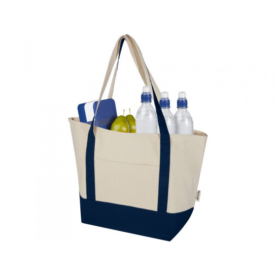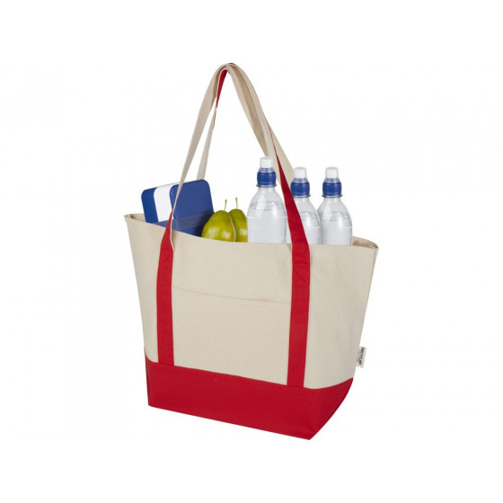 Эко-сумка Sam, изготовленная из 100% переработанного хлопка, сертифицированного согласно GRS, — идеальная сумка для пикника или похода за продуктами. Хлопок плотностью 320 г/м² делает эту сумку прочной и долговечной, а двойные ручки делают ее удобной для переноски тяжелых предметов в основном отделении. Длина ручек: 30 см. Выдерживает вес до 10 кг. Объем: 15 литр. GRS certified recycled cotton, 320 g/m2.