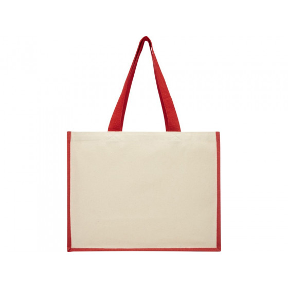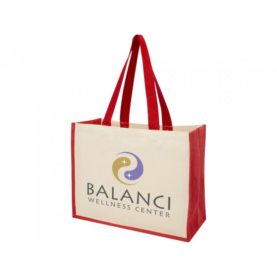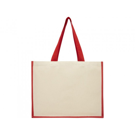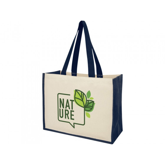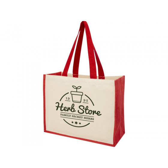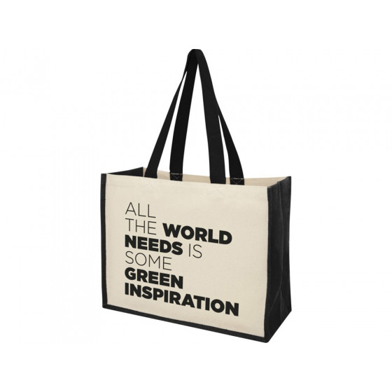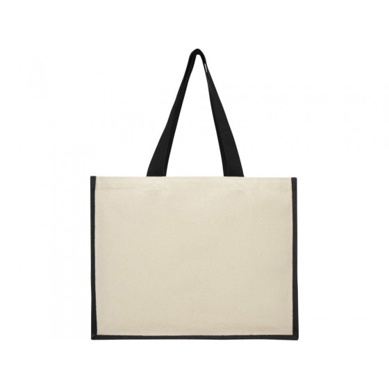 Модная сумка для покупок с боковыми панелями (вес 320 г/м²), подходящими для нанесения изображений, окантовкой из ламинированного джута и хлопковыми ручками.