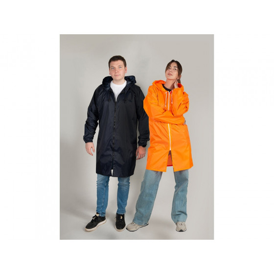 Плащ-дождевик прямого силуэта с капюшоном и рукавом реглан. Застегивается на центральную молнию со светоотражающей полосой с внутренней ветрозащитной планкой....
