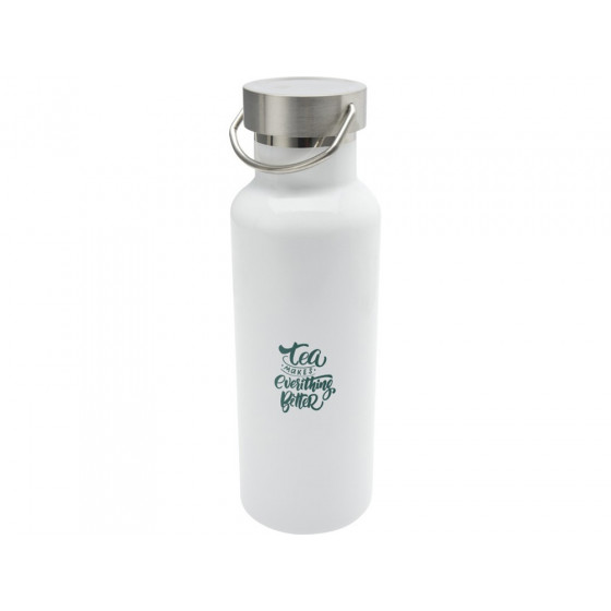 Прочная бутылка для воды из нержавеющей стали с двойными стенками, вакуумной изоляцией, сертифицированная RCS, с завинчивающейся крышкой из нержавеющей стали и прочной ручкой-петлей из нержавеющей стали. Объем: 500 мл. Герметичность. Уложена в подарочную коробку. RCS certified recycled stainless steel.