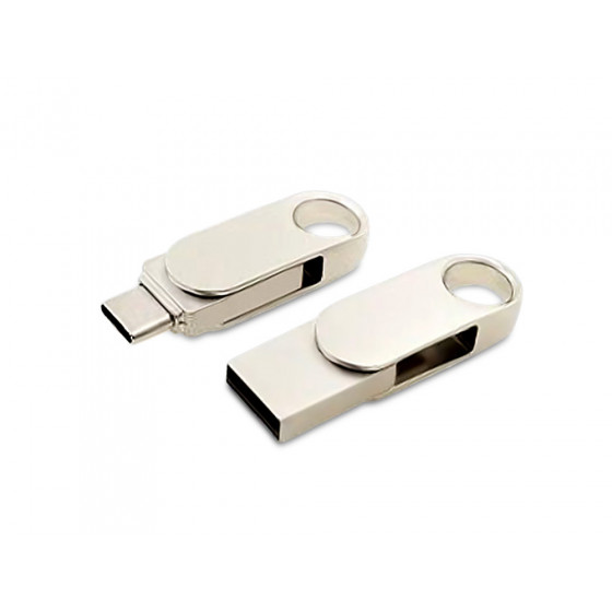 Флеш-накопитель поворотный механизм, c дополнительным разъемом TypeC, с одноцветным металлическим клипом., объем памяти 8 Гб. Металлический корпус. Скорость чтения 15-20 Мб/c. Скорость записи 5-8 Мб/с.