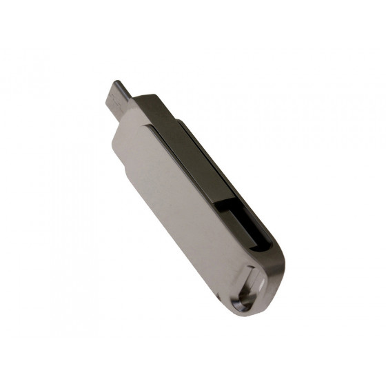 Флеш-накопитель поворотный механизм, c дополнительным разъемом Type-C с одноцветным металлическим клипом, объем памяти 16 Гб. Металлический корпус. Скорость чтения 15-20 Мб/c. Скорость записи 5-8 Мб/с.