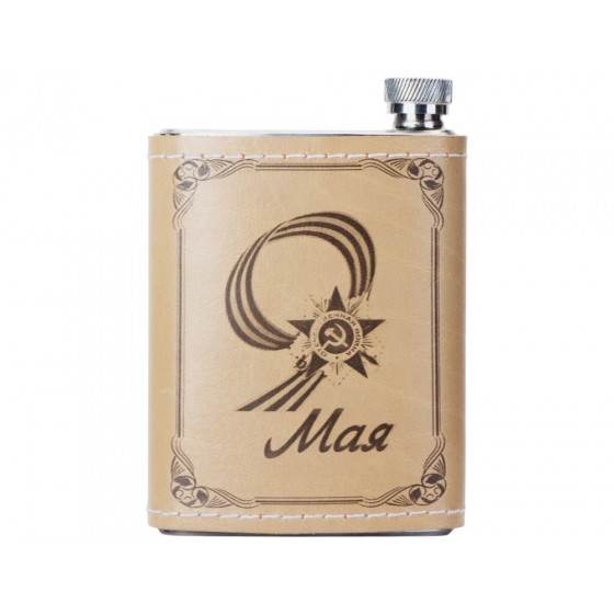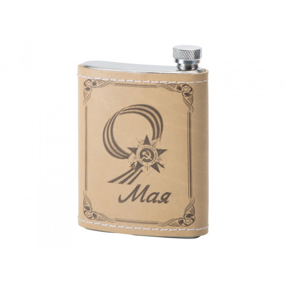 Фляга 0,5л в оплетке из натуральной кожи с нанесением рисунка методом художественного выжигания.