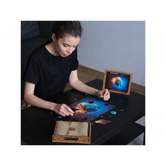 Фигурный пазл от Unidragon из новой серии “Космос”, поразит своими красками. Мерцающие звезды распространяют лучи света вокруг себя. Длинные хвосты комет оставляют яркие шлейфы за собой. Детали пазла удивительным образом складываются в планеты и солнечные вихри. Лучи яркого солнца озаряют настоящее космическое приключение.