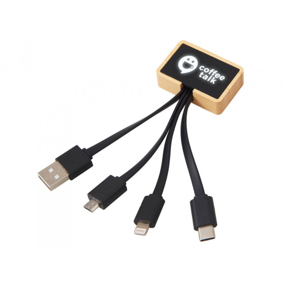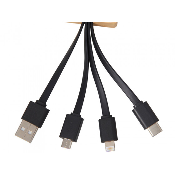 Универсальный зарядный кабель 3-в-1 — элегантное решение для владельцев любых гаджетов. С тремя разъемами (USB-C, micro USB, Lightning), он заменяет три кабеля в одном компактном корпусе, выполненном из натурального бамбука и переработанного ABS-пластика. Это не просто практичный аксессуар — это экосознательный стиль, который подчеркнёт ваш вкус и заботу об окружающей среде. Встроенная белая подсветка с возможностью нанесения логотипа добавляет изюминку: ваш бренд или инициалы мягко светятся при подключении, создавая эффект премиальности и индивидуальности. Идеален для повседневного использования, путешествий и в качестве запоминающегося корпоративного подарка.