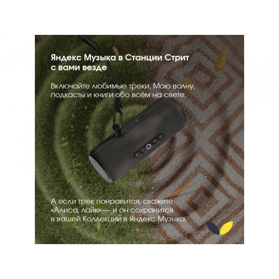 Погода бывает непредсказуемой, а планы иногда меняются буквально на ходу. Станция Стрит к этому готова, ведь её дизайн продуман так, чтобы вы могли использовать умную колонку в разных природных условиях. Благодаря высокому классу защиты IP67 Станция Стрит устойчива к пыли и воде. Если вы попадете под дождь с умной колонкой или случайно уроните ее в воду, с ней ничего не случится.
