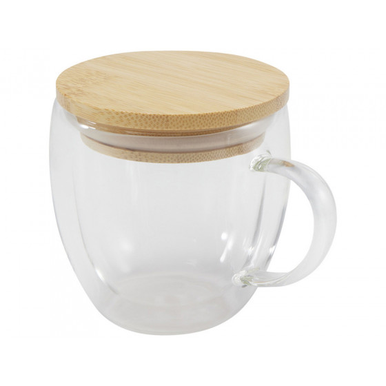 Стеклянная кружка Lenora объёмом 250 мл с двойными стенками и стильной бамбуковой крышкой. Она дольше сохраняет температуру напитка, помогает избежать проливов и бережно удерживает его аромат. Идеальный выбор для уютного чаепития или кофе-паузы.