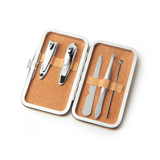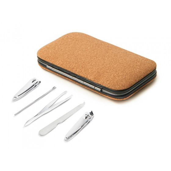 Набор для маникюра из пробки с 5 приборами из нержавеющей стали: пилкой, ножницами, кусачками для ногтей, пинцетом и толкателем для кутикулы. Поставляется в упаковке...