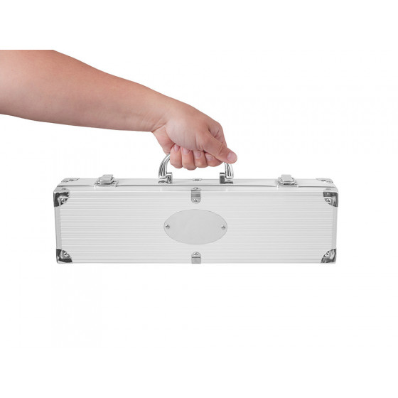 Набор для барбекю 3 предмета. Лопатка, щипцы и вилка в кейсе. На алюминиевом кейсе имеется шильд для персонализации.
