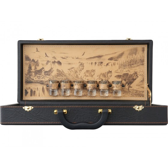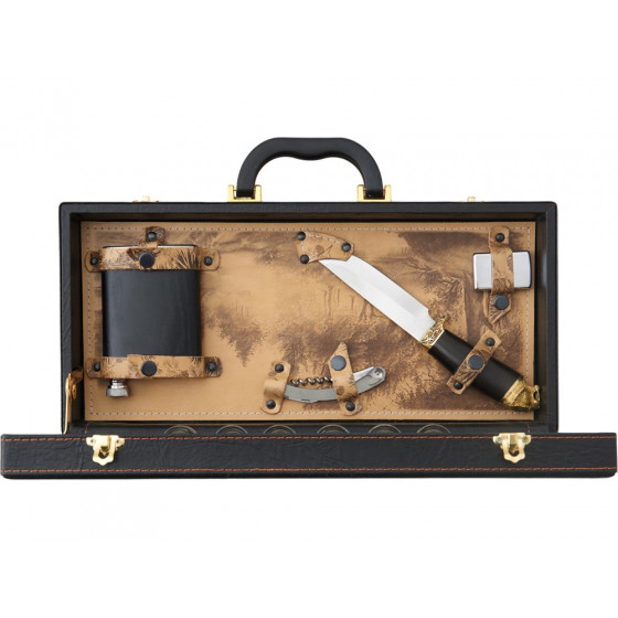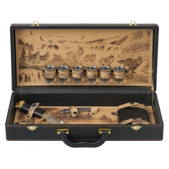 Оригинальный дорожный набор на 4 персоны в барсетке с удобным ремешком для переноски. Барсетка из искусственной кожи, отделка- натуральная кожа с художественным...