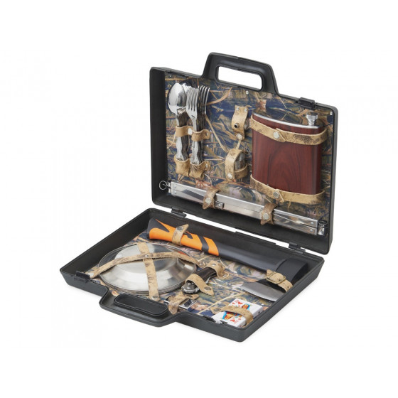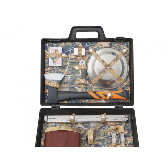 Практичный и функциональный набор для любителей барбекю и шашлыков на природе. В компактной упаковке богатое содержимое: щипцы, лопатка, вилка, кисточка, шампура,...