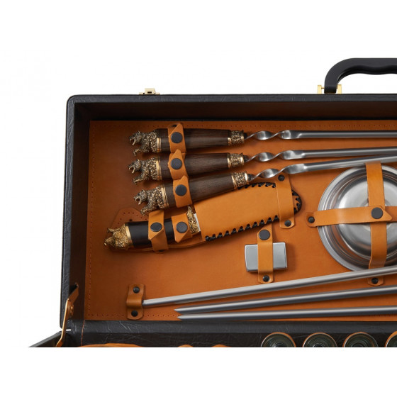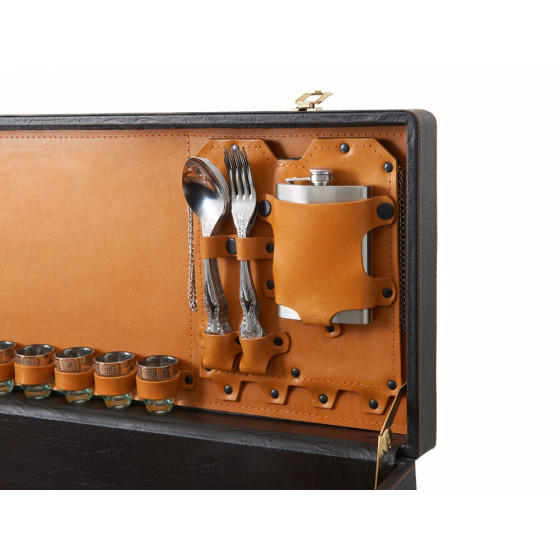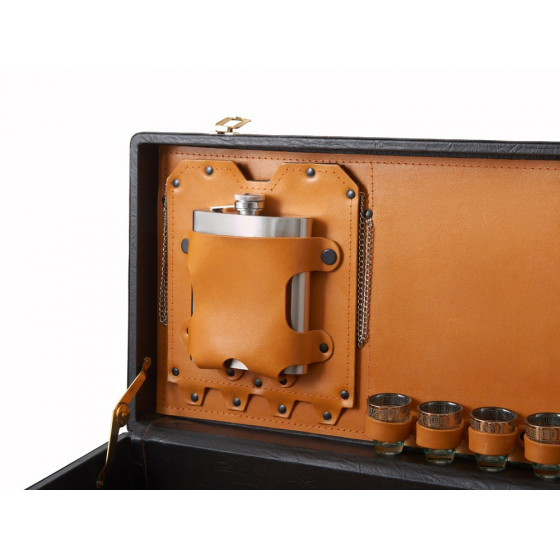 Набор "Охотничий азарт". Каждый кейс изготовлен из натуральной кожи. На наружных сторонах имеется свой уникальный авторский рисунок, выполненный в технике...