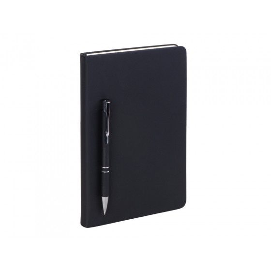 Бизнес-блокнот в твёрдой обложке имеет ляссе в тон обложки и среза. Бумажный блок разлинован в линейку и выполнен из бумаги, полученной из древесины из специальных восполняемых лесных ресурсов, имеет сертификат FSC.