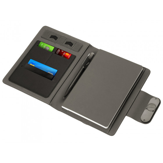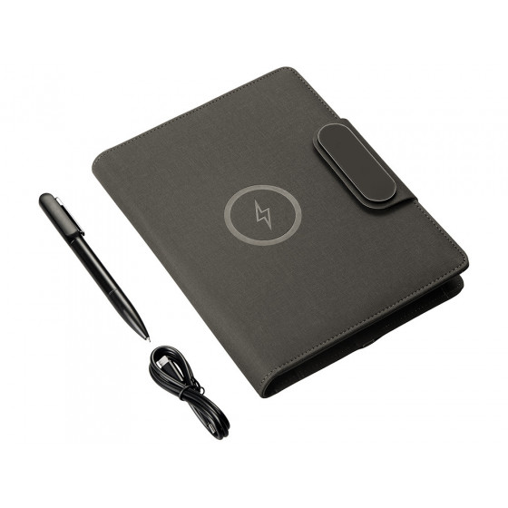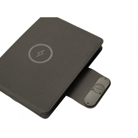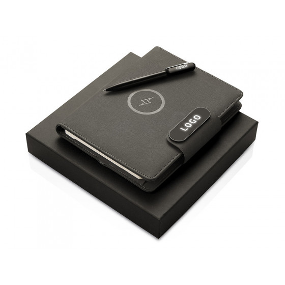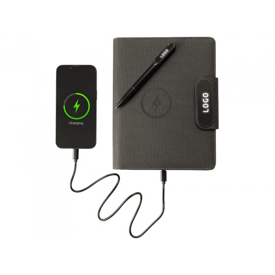 Подарочный набор "Twilight" — стильный и современный бизнес-подарок, который в полной мере воплощает идею многофункциональности. Он состоит из органайзера формата А5, с помощью которого можно заряжать гаджеты как беспроводным способом, так и через кабель, фиксировать телефон для просмотра видео или проведения конференций, хранить ручку и делать записи, а также самой металлической ручки. Клапан органайзера и в верхняя часть ручки светятся при гравировке логотипа, что делает набор стильным, а лого более ярким и заметным. Практичный и технологичный аксессуар, который в состоянии заменить сразу несколько вещей.
