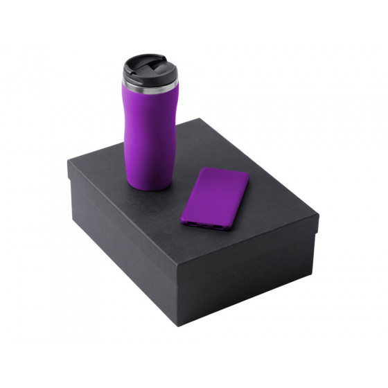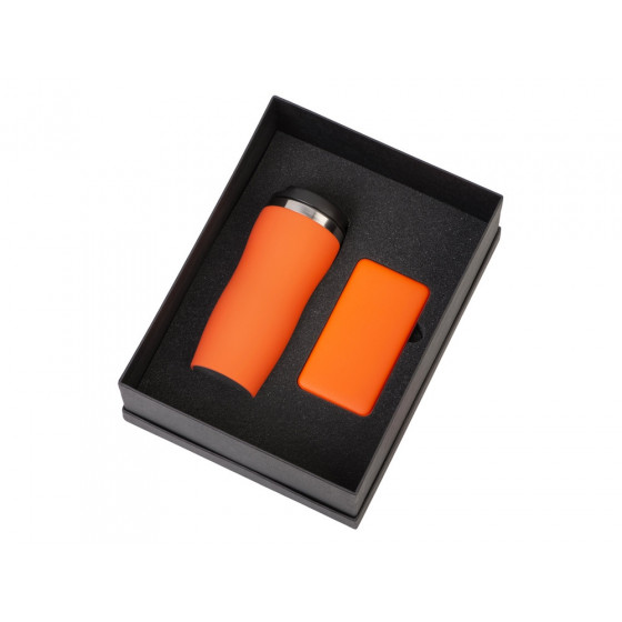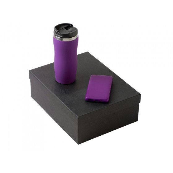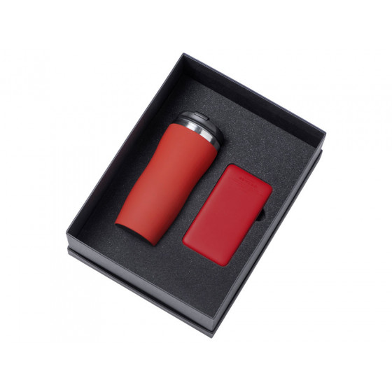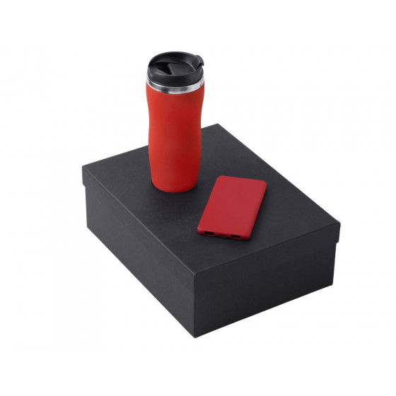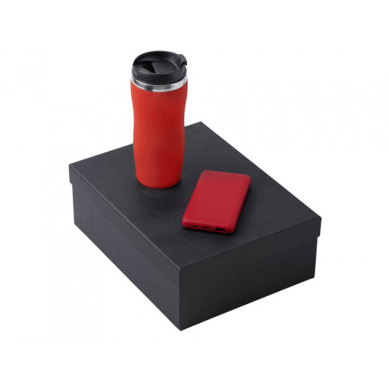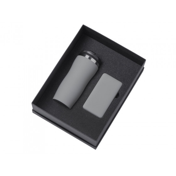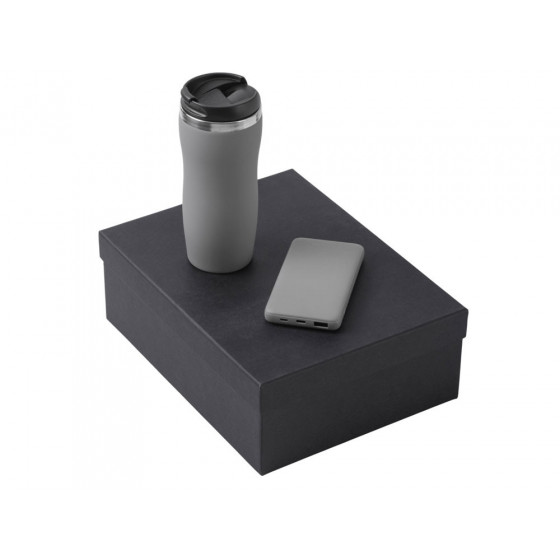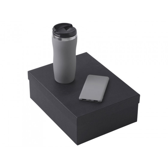 - термокружка - нержавеющая cталь с покрытием soft-touch, внешний аккумулятор - пластик с покрытием soft-touch, коробка - картон переплетный 1,5 мм, дизайнерская бумага.