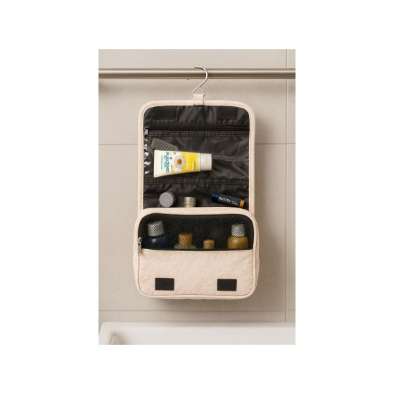 Несессер Planar оснащен металлическим крючком для подвешивания, который в сложенном виде убирается внутрь и не будет вам мешать. Для переноски несессер имеет ручку снаружи, а еще вы найдете плоский вместительный карман на его задней стороне. Клапан несессера закрывается на липучки и имеет три кармана — большой на молнии из прозрачного материала, который легко моется, даже в случае, если флакон изнутри разгерметизировался, и два из сетки, куда можно положить необходимые мелочи и которые удобнее использовать в висящем виде.