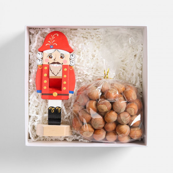 Могут ли чудеса случаться как по щелчку? Конечно! Праздничный набор позволит окунуться в сказочный мир детства. В аккуратной деревянной коробочке лежит настоящий орехокол — Щелкунчик, персонаж новогодней волшебной истории. С лесными орехами он справляется на раз. Пожелайте получателю всегда решать любые задачи как по щелчку.