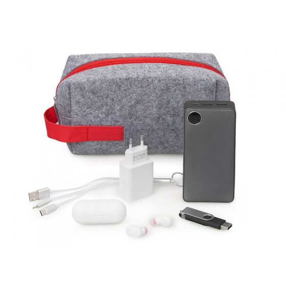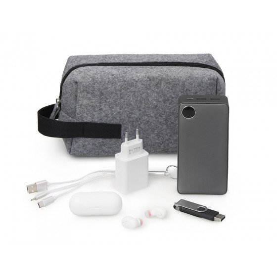 Идеальное решение для организации большого количества гаджетов! Felt - это органайзер из высококачественного RPET-фетра, который не только бережно хранит вашу электронику, но и заботится о планете. Его объем позволяет разместить множество проводов, несколько пауэрбанков, все типы наушников, адаптеры и даже внешние жесткие диски. Удобная ручка позволит носить его как самостоятельный аксессуар или легко доставать из сумки. Этот органайзер — это не просто хранение, это комфорт и забота о ваших технологиях!
