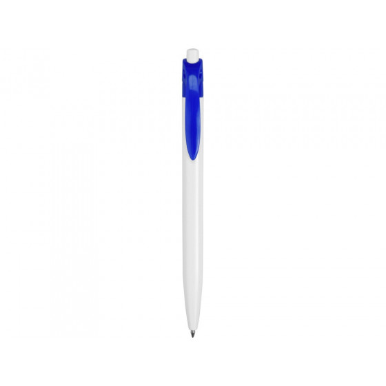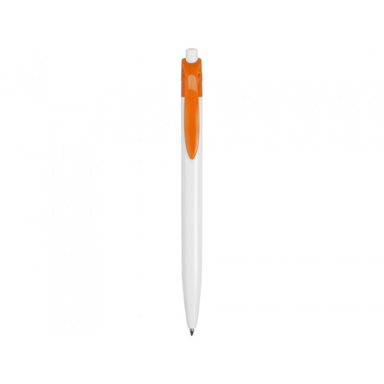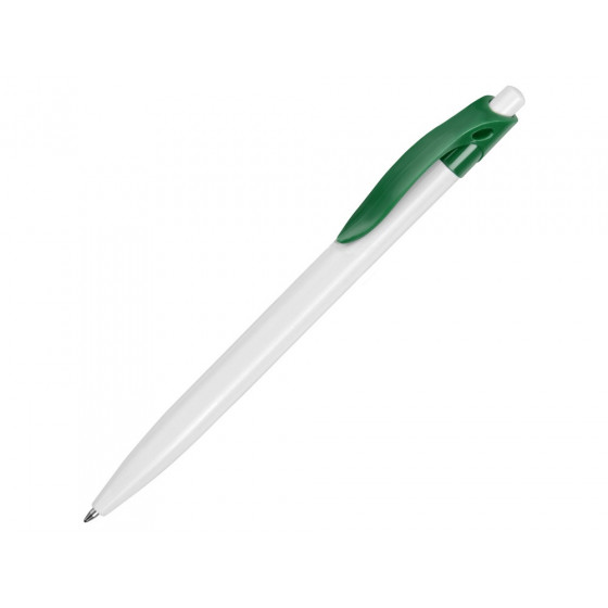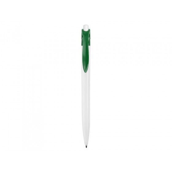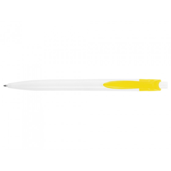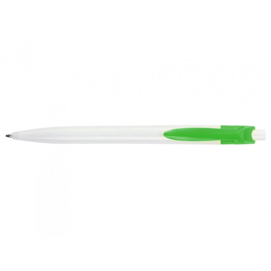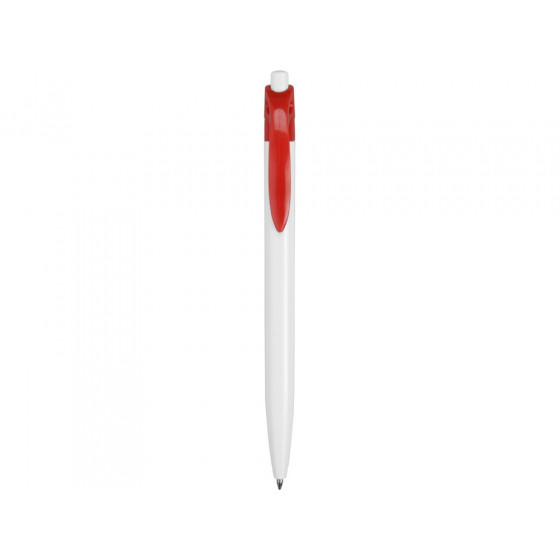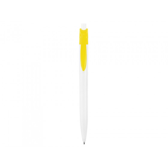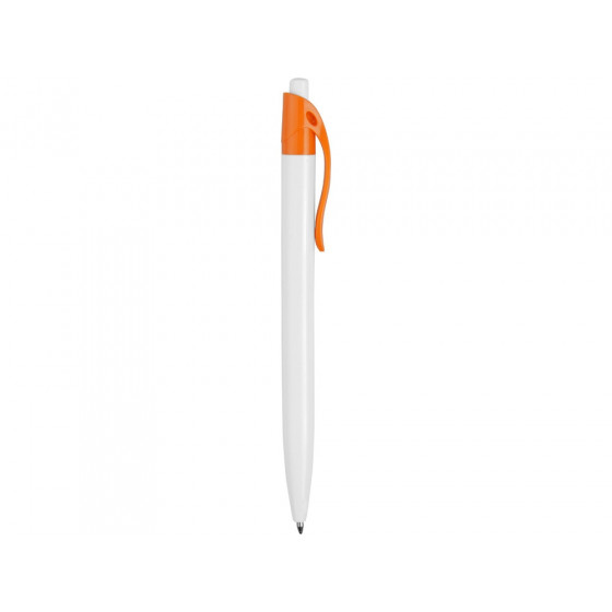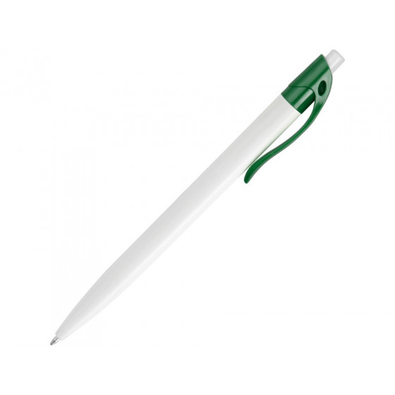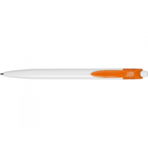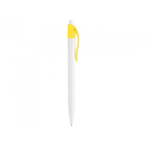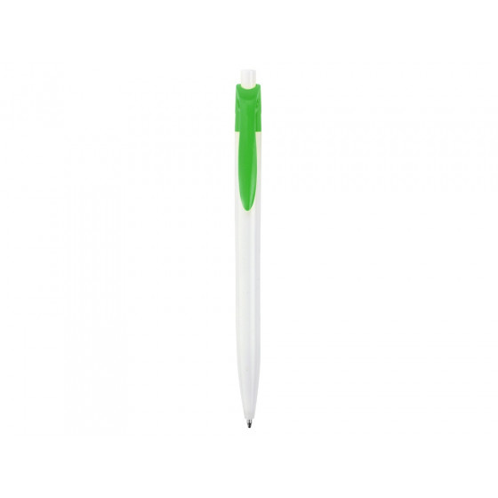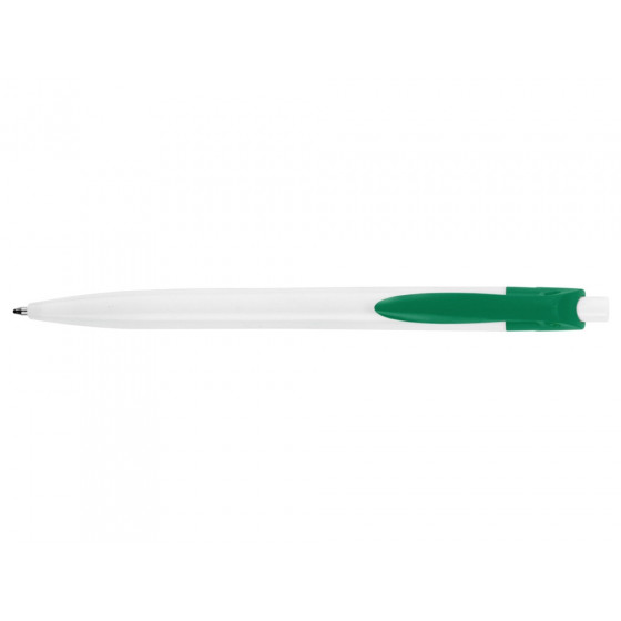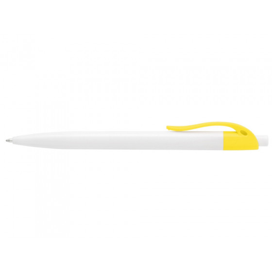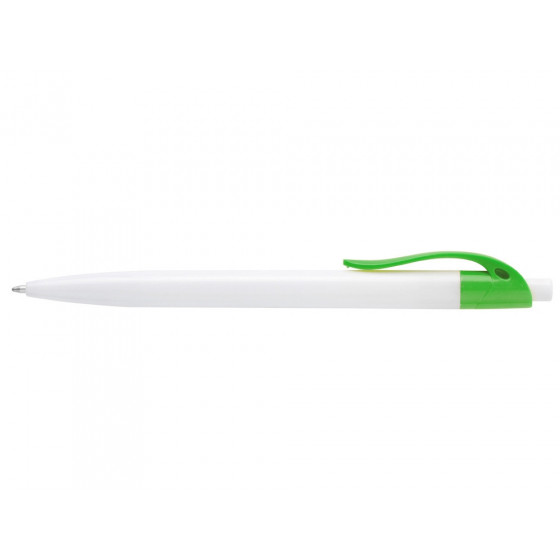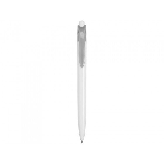 Автоматическая шариковая ручка с нажимным механизмом, матовым тонированным белым корпусом и цветным наконечником, широким изогнутым клипом.