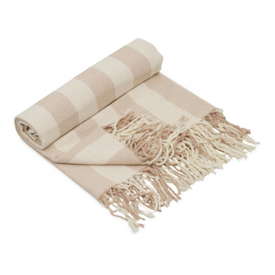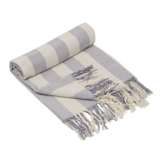 Хлопковый натуральный плед в модную полоску можно использовать как одеяло или как покрывало для украшения интерьера. Бахрома по бокам добавит комфорта и стиля. Немаркие цвета и легкий уход создают дополнительный комфорт при использовании.