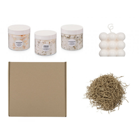 - упаковка с солью - пластик, свеча - 90% парафин очищенный, 10% соевого воска, фитиль хлопковый, коробка - картон