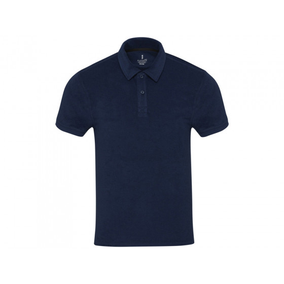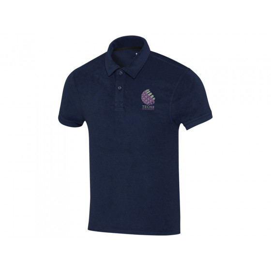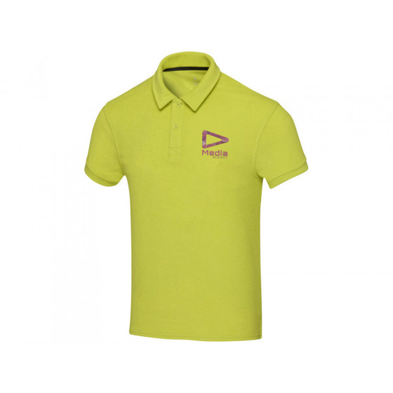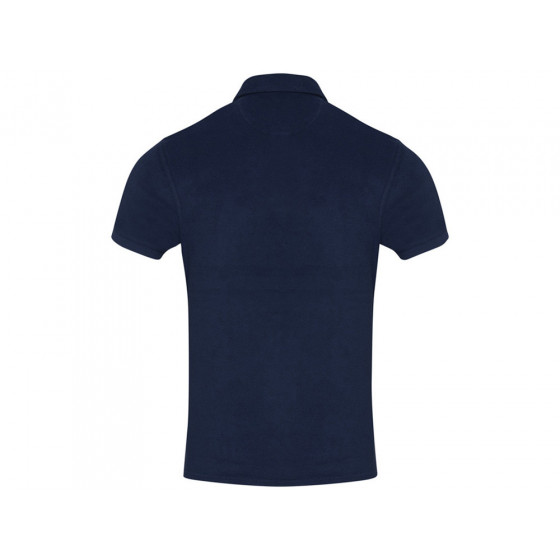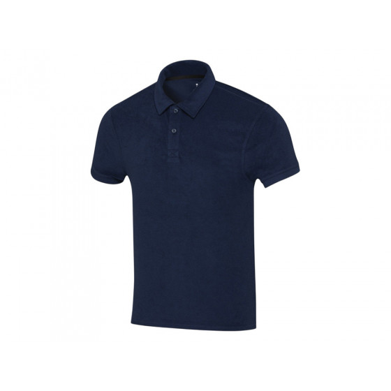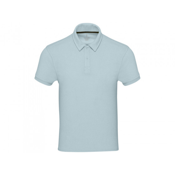 Поло с коротким рукавом, воротник из риба 1х1, планка застегивается на 3 пуговицы.