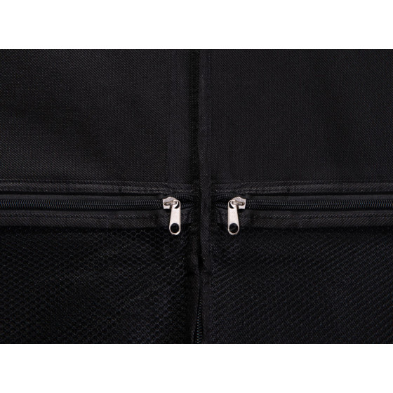 Дорожный чехол из нетканого материала для одежды, который помогает перевозить одежду чистой и без складок. В сложенном виде напоминает форматом портфель, легко переносится с места на место благодаря удобным ручкам. Чехол имеет отверстие для крючка вешалки, на которую вы можете повесить одежду перед тем, как поместить ее внутрь.