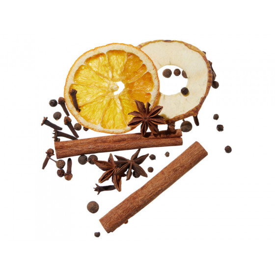 корица палочки, бадьян, апельсин, яблоко, гвоздика, перец душистый, лавровый лист, перец чёрный