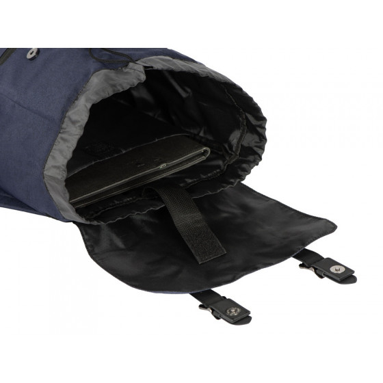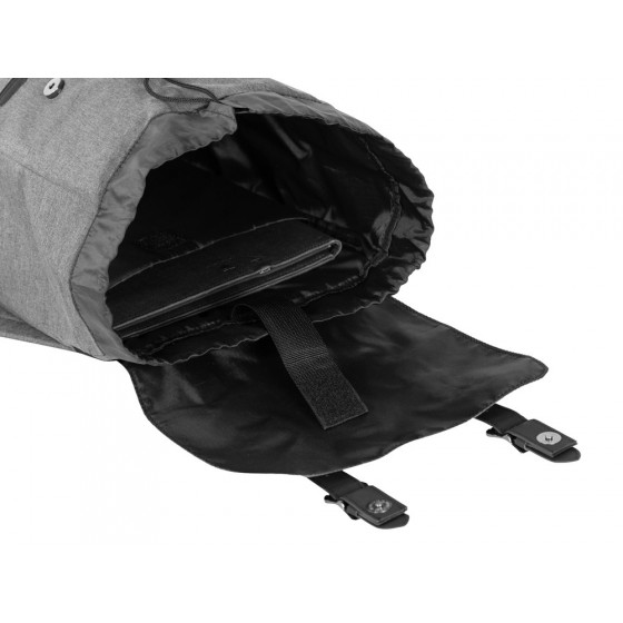 Легкий и вместительный рюкзак закрывается с помощью двух магнитов и стяжки-шнурка. Внутри расположен карман для ноутбука, который фиксируется эластичной лентой на липучке. Снаружи - карман на молнии. Лямки регулируютcя по длине.