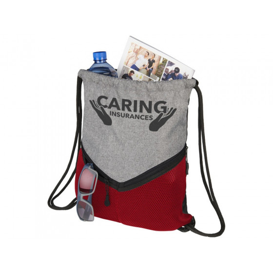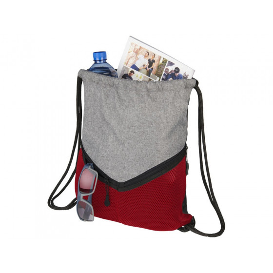 Спортивный рюкзак с застежкой на шнурке, большим основным отделением и двумя сетчатыми карманами на молнии. Сделано с прочной полиуретановой подложкой.