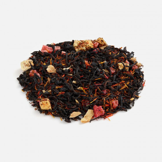 Черный индийский чай, лист брусники, мальва, календула, можжевельник, боярышник, клюква, мята, ароматизирован маслами.Масса нетто: 70 г.Срок фасовки чая в подарочный...
