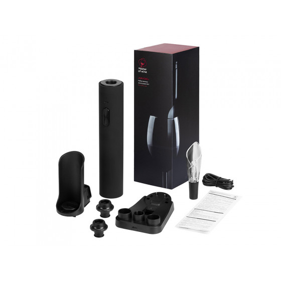 - электрический штопор-вакуумный насос, нож для срезания фольги, аэратор, вакуумные пробки, зарядная станция, кабель USB-C