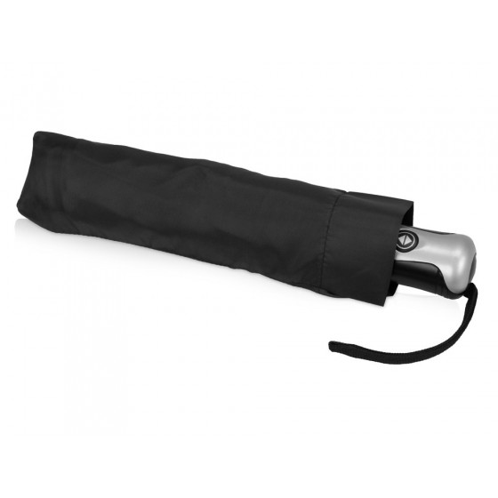 Полуавтоматический складной зонт открывается нажатием кнопки на ручке. Для большего удобства на ручку нанесено покрытие soft touch и добавлен эластичный шнурок.