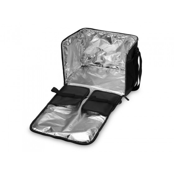 Раскладывается в удобное место для принятие пищи во время пикника на природе благодаря особой конструкции с молниями. Внутри карманы для всего необходимого и держатели на липучках для бутылок. Внутренняя подкладка из пены толщиной 3 мм. Широкая лямка регулируется по длине. 2 боковых сетчатых кармана.