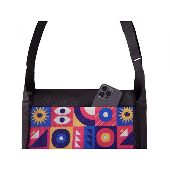 Для размещения принта подходит передний карман, на котором можно выполнить полноцветную печать. На поверхности кармана можно разместить лого компании или выставки, а также полноразмерный принт любой сложности.