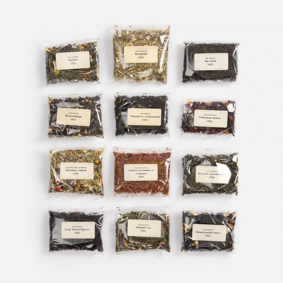 Разные времена года — разные сорта чая! Именно по такому принципу создан набор Flowers Story. Это настоящий чайный календарь: на каждый месяц предусмотрен особый вид тонизирующего насыщенного напитка. Открывайте нужное окошко по времени года или по настроению — и окунитесь в атмосферу цветущей весны, жаркого лета, расслабленной осени или волшебной зимы!Масса нетто: 180 г.В каждом пакетике около 15 г чая — этого хватит на 2–3 чаепития.Срок годности: 24 месяца.В наборе 12 видов чая:Миндальный пирог. Состав: черный чай среднелистовой, лепестки миндаля, кусочки яблок, корица дробленая, цветки апельсинового дерева, ароматизатор «Миндаль».Черный со смородиной. Состав: черный чай среднелистовой, лист черной смородины, черная смородина сублимированная, красная смородина сублимированная, ароматизатор «Смородина». Витаминный. Состав: черный чай среднелистовой, розмарин, апельсин цедра, ромашка, ягоды облепиха, цветки лилии, ароматизатор «Апельсин».Малина с мятой. Состав: травяной гибискус, кусочки малины, мята, лист малины, кусочки яблок, лист смородины, ромашка, цедра шиповника, лимонная трава, лепестки роз, календула, ароматизатор «Малина». Эрл Грей. Состав: черный чай среднелистовой, ароматизатор «Бергамот».Граф Монте-Кристо. Состав: черный чай среднелистовой, красная смородина, мальва, сафлор, ароматизатор «Абрикос».Мохито. Состав: зеленый чай крупнолистовой, мята, кусочки сушеного лимона и сушеных яблок, кубики ананаса, цветки апельсинового дерева, ароматизатор «Лимон».Огненная вишня. Состав: фруктовый каркаде, черная и красная вишня, кубики ананаса, цедра шиповника, ароматизатор «Вишня».Ройбуш «Земляника со сливками». Состав: ройбуш, лист земляники, земляника сублимированная, ароматизатор «Замляника».Зеленый с жасмином. Состав: зеленый чай, цветы жасмина.Вечерний травяной. Состав: мелисса, лист смородины, ромашка, мята, шалфей, цветки василька, мальва, лаванда, ароматизатор «Смородина».Зимний сон. Состав: зеленый чай, кусочки яблок, корица, гвоздика, цветки мальвы, кусочки сушеного апельсина, ароматизатор «Апельсин».