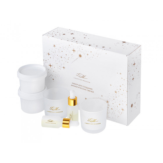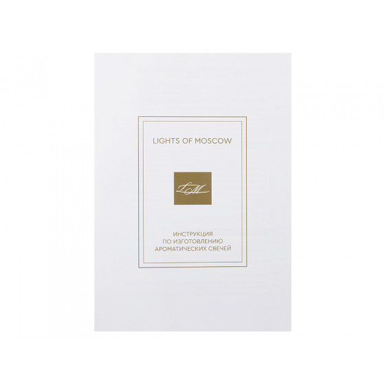 Уникальный набор для изготовления ароматических свечей станет приятным подарком и погрузит в увлекательный процесс. Набор выполнен в подарочной коробке с ложементом, в него входят все необходимые компоненты и подробная инструкция. Откройте для себя удивительный мир ароматов с Lights of Moscow! Вы сможете создать две невероятные композиции, которые точно понравятся Вам и Вашим близким! Условия хранения: — Свечи: +18…+24 °C, вдали от источников тепла, сквозняков и прямых солнечных лучей. — Рекомендуемая влажность — не более 50%. — Избегайте длительного воздействия яркого света. В комплекте: Подарочная брендированная коробка с ложементом - 1 шт. Стакан стеклянный матовый с тиснением логотипа LM 100 мл - 2 шт. Контейнер с соевым воском – 2 шт. Флакон стеклянный матовый c тиснением логотипа LM с ароматической отдушкой – 2 шт. Деревянный фитиль с держателем – 1 шт. Хлопковый фитиль с держателем - 1 шт. Наклейка для крепления фитиля - 2 шт. Палочка для перемешивания - 2 шт. Салфетка - 1 шт. Перчатка - 1 шт. Открытка - 1 шт. Инструкция по изготовлению ароматических свечей – 1 шт.